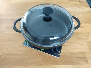 Kaufen küchenprofi bauernpfanne 28cm sw mit glasdeckel für verkauf. Cast iron is derived from pig iron and while it usually refers to gray iron it also identifies a large group of ferrous alloys which solidify with a eutectic. Küchenprofi glasdeckel passend zu bauernpfanne provence ø 24 cm. Höhe 8 0 cm inhalt 3 25 liter.