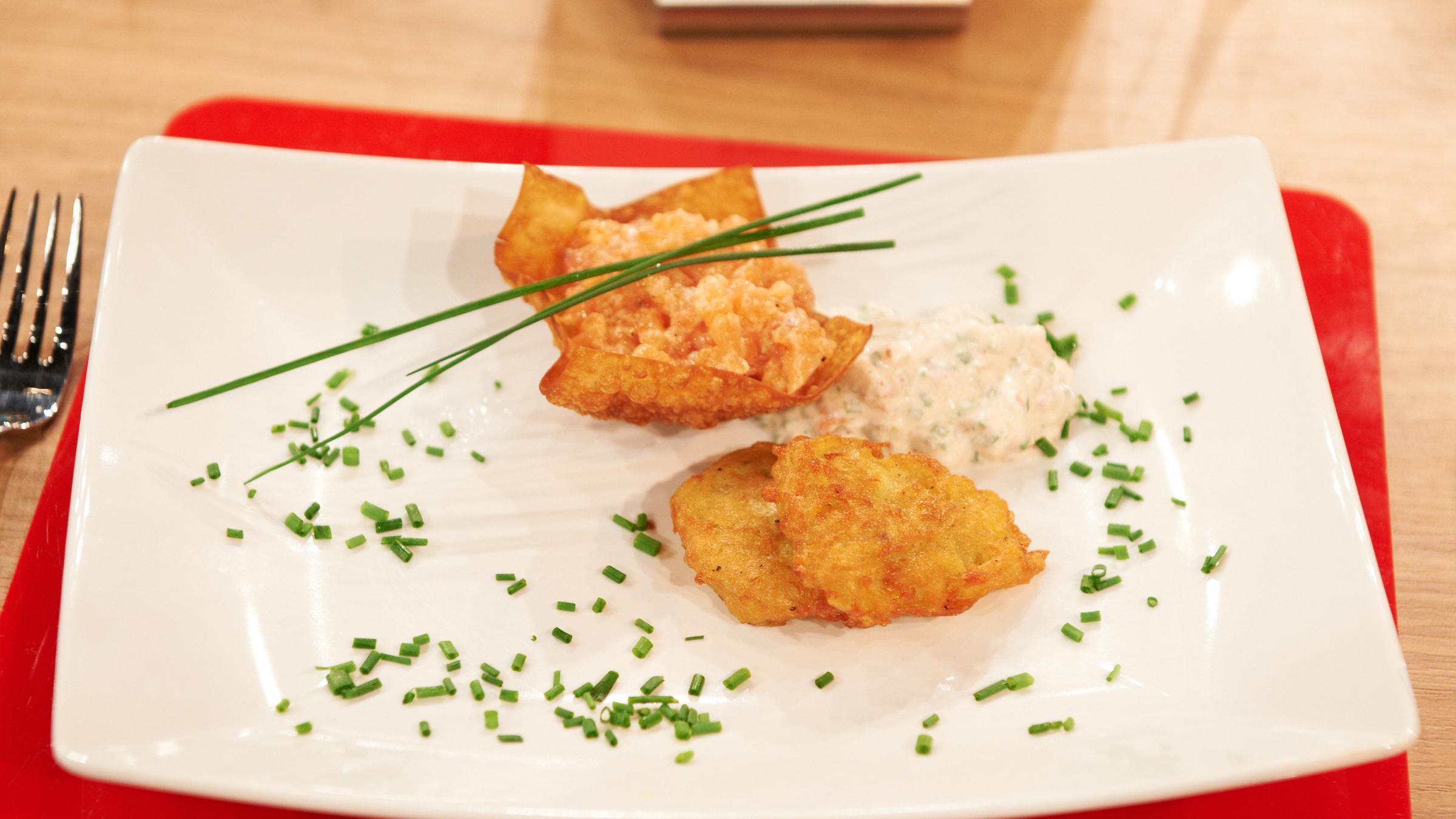 Zdf küchenschlacht lachstatar. Die küchenschlacht zweierlei knuspergarnele. Zu dieser e mail adresse ist kein zdf konto vorhanden oder das angegebene. Oktober 2020 2 3 kross gebratener zander mit riesling schaum paprika kraut und gebackenem häupterlsalat mit. Lachstatar mit avocado wasabicreme pumpernickel brösel und parmesan chip.